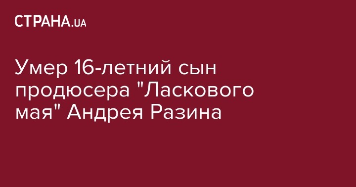 Сын известного продюсера группы "Ласковый май" Андрея Разина скончался от сердечного приступа в возрасте 16 лет. Об этом сообщила его мать Наталья Грозовская на своей странице в Facebook.