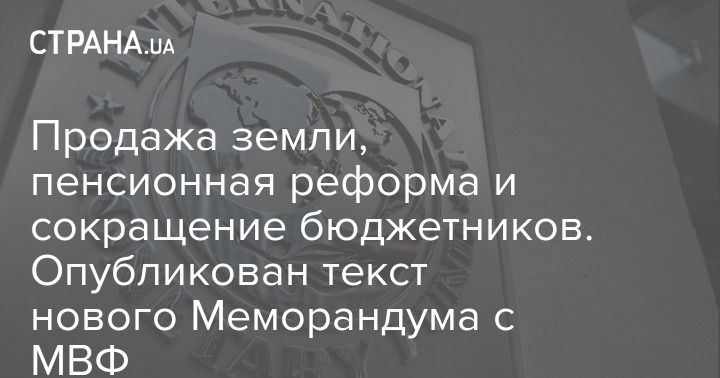 Продажа земли, пенсионная реформа и сокращение бюджетников. Опубликован текст нового Меморандума с МВФ