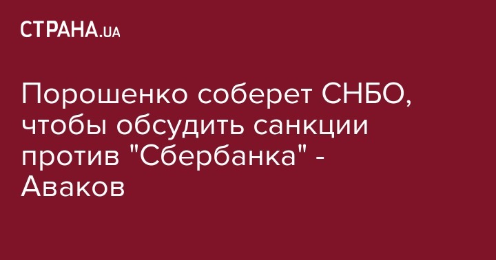 Президент Петр Порошенко в среду собирает Совет национальной безопасности и обороны для рассмотрения вопроса о возможном вводе санкций против украинской "дочки" Сбербанка России. Об этом в эфире телеканала ZIK сообщил глава МВД Арсен Аваков, передает "Интерфакс-Украина".