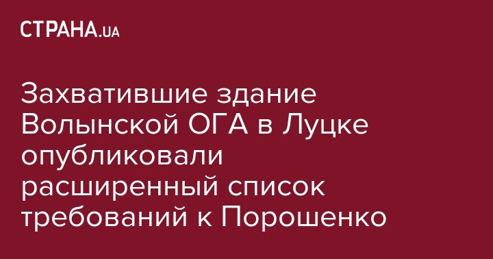 Захватившие здание Волынской ОГА в Луцке опубликовали расширенный список требований к Порошенко