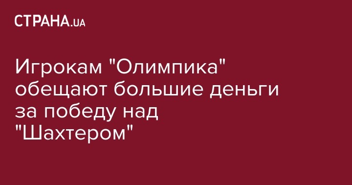"У нас в контракте есть пункт, согласно которому предусмотрены повышенные премиальные в случае успешной игры против команды, находящейся на первой строчке в турнирной таблице. И все ребята об этом знают. Так что дополнительная мотивация против "Шахтера" есть", - подчеркнул президент "Олимпика".
