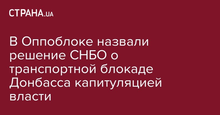 Оппозиционный блок выступил резко против решения СНБО о полной транспортной блокаде Донбасса, назвав его "откровенной политической капитуляцией перед нарушителями закона. Об этом сообщает пресс-служба политпартии