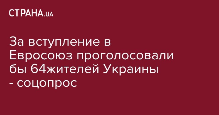 За присоединение Украины к Европейскому союзу, если бы голосование произошло сегодня, проголосовали бы 64% участников соцопроса населения Украины. На вред такого шага указали 36% респондентов.