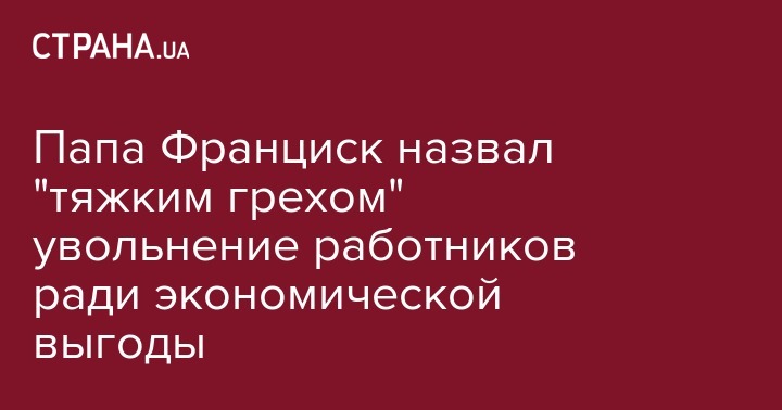 Папа Франциск заявил, что бизнесмены, увольняющие людей и лишающие их средств к существованию ради экономической выгоды, совершают тяжкий грех. Об этом глава Римско-Католической церкви сказал, обращаясь с традиционной проповедью к верующими, собравшимися на площади святого Петра, пишет ТАСС.