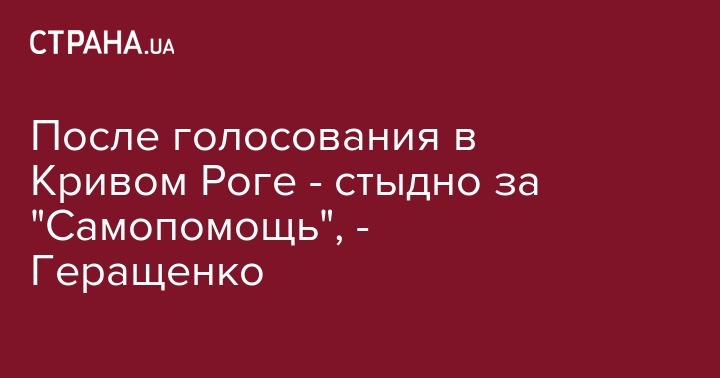 Народный депутат "БПП" Ирина Геращенко в своем Facebook написала, что после выборов в Кривом Роге, ей стыдно за "Самопомощь".
