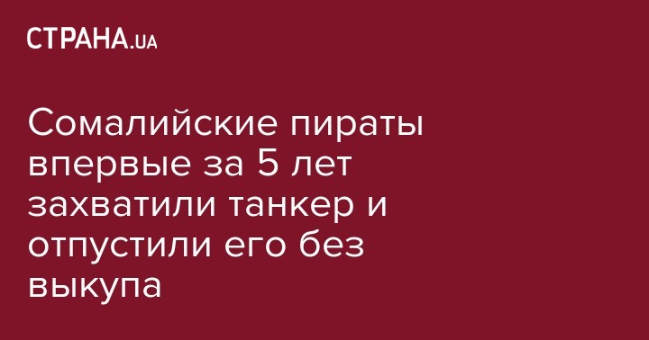 В пятницу, 17 марта, стало известно о том, что сомалийские пираты отпустили без выкупа нефтеналивной танкер, захваченный четыре дня назад. Об этом сообщает Русская служба ВВС.
