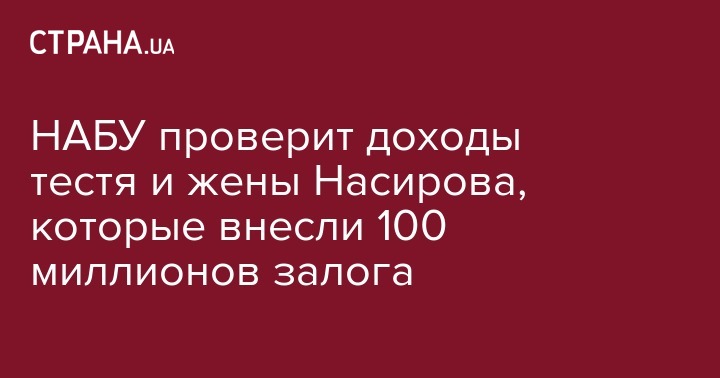 Как сообщала "Страна", жена и тесть Насирова пополам внесли за него залог в 100 миллионов гривен. После освобождения Насирова, адвокаты попробуют восстановить его в должности.