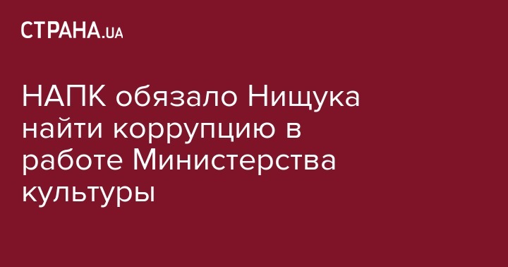 Национальное агентство по предупреждению коррупции обязало министра культуры Евгения Нищука провести служебные расследования о коррупции у работников Минкульта. Об этом говорится в предписании на сайте НАПК.