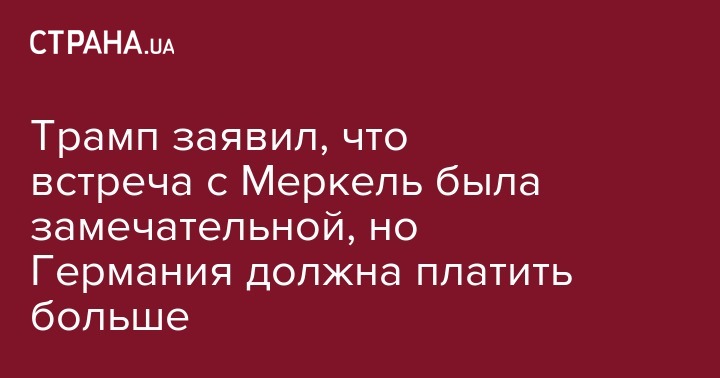 Президент США Дональд Трамп высоко оценил встречу с канцлером Германии Ангелой Меркель, но заявил, что Германия "должна НАТО значительные суммы". Об этом Трамп сообщил на своей странице в Twitter.