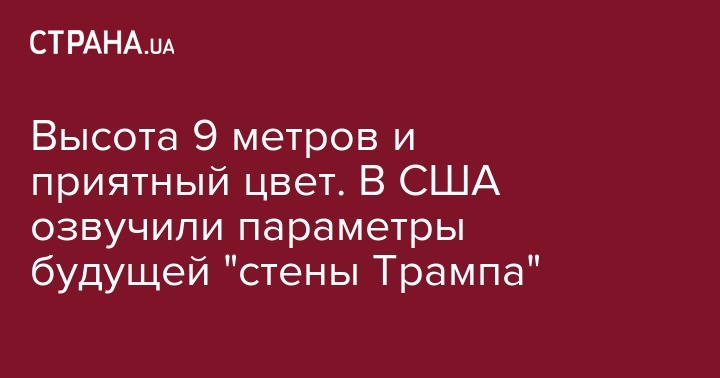 На сайте Погранично-таможенной службы США появилась конкурсная документация, в которой для частных подрядчиков изложены требования к параметрам стены на границе в Мексикой. Как заявлено в документе, идеальной для "стены Трампа" будет считаться высота в девять метров.