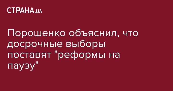 "Предвыборная кампания поставила бы на паузу все реформы на полгода, а то и на год", - сказал Порошенко в ходе заседания Совета регионального развития.