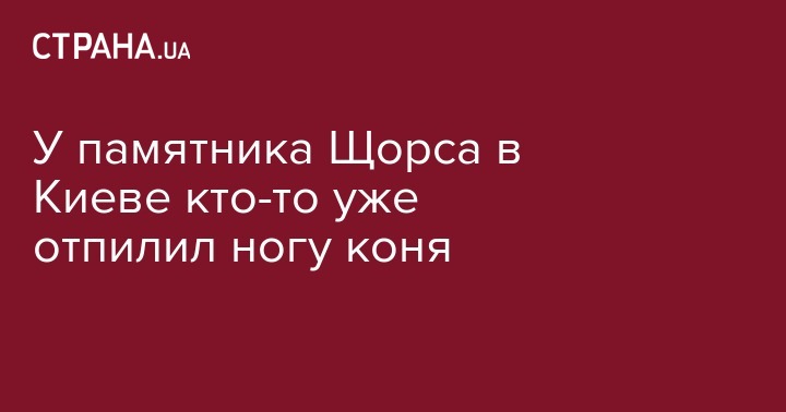 В Киеве еще не начался официальный демонтаж памятника Щорсу на бульваре Шевченко, а у памятника уже исчезла нога коня.