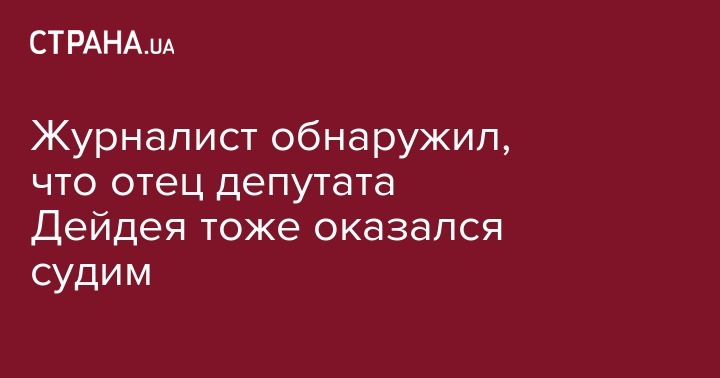 "Вы будете смеяться, но за три недели до задержания милицией нынешнего народного депутата Украины Евгения Дейдея (напомню, что Евгений Сергеевич был приговорен к 5 годам лишения свободы за разбой по трем эпизодам приговором Суворовского районного суда г. Одесса от 23 марта 2012 года, с текстом приговора можно ознакомиться по этим ссылкой http://wp.me/p7OLON-jK), его отец, Дейда Сергей Яковлевич, был осужден приговором Измаильского горрайонного суда Одесской области за мошенничество", - сказано в публикации. При этом он приводит соответствующую выписку из Единого реестра судебных решений.