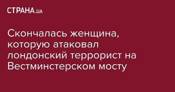 В среду, 22 марта в Лондоне скончалась женщина, которая получила травму в результате теракта у британского парламента.