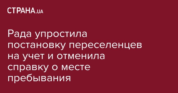 Рада упростила постановку переселенцев на учет и отменила справку о месте пребывания