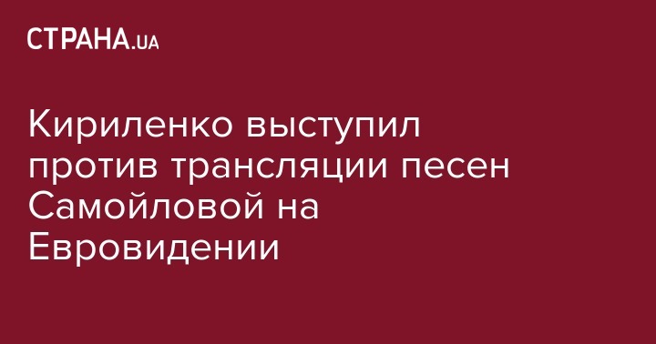 Вице-премьер Вячеслав Кириленко считает недопустимым, чтобы украинские каналы транслировали в прямом эфире "Евровидения" выступления российской певицы Юлии Самойловой. Об этом он написал в Twitter.