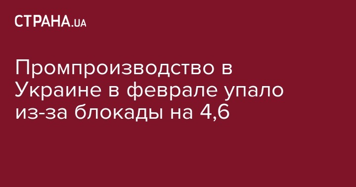 Промпроизводство в Украине в феврале упало из-за блокады на 4,6%
