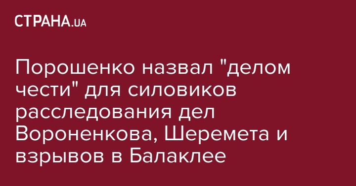Порошенко назвал "делом чести" для силовиков расследования дел Вороненкова, Шеремета и взрывов в Балаклее