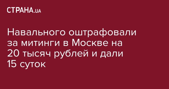 Навального оштрафовали за митинги в Москве на 20 тысяч рублей и дали 15 суток
