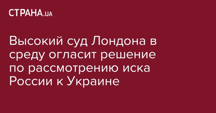 Высокий суд Лондона в среду огласит решение по рассмотрению иска России к Украине