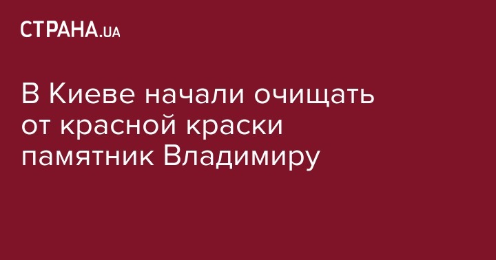 В Киеве начали отмывать от красной краски старейший столичный памятник князю Владимиру, который облили еще еще осенью прошлого года. Об этом сообщила гендиректор Киевского научно-методического центра по охране, реставрации и использованию памятников истории, культуры и заповедных территорий Ирина Прокопенко, передает издание "Сегодня".