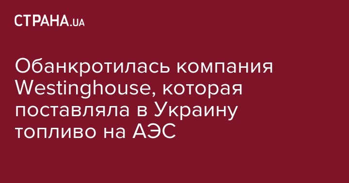 Обанкротилась компания Westinghouse, которая поставляла в Украину топливо на АЭС