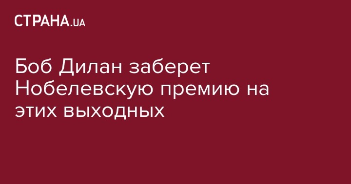 Лауреат Нобелевской премии по литературе 2016 года, американский музыкант Боб Дилан, в эти выходные получит медаль и диплом в Стокгольме. Об этом постоянный секретарь Шведской академии Сара Даниус написала в своем блоге.