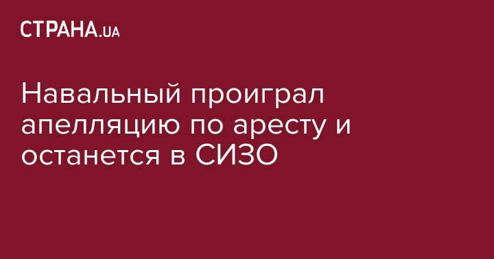Навальный проиграл апелляцию по аресту и останется в СИЗО