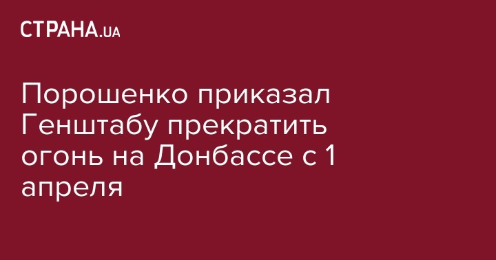В четверг, 30 марта президент Украины Петр Порошенко сообщил, что отдал приказ Генштабу и Минобороны Украины прекратить огонь на Донбассе с 1 апреля 2017. Об этом сообщает Интерфакс.