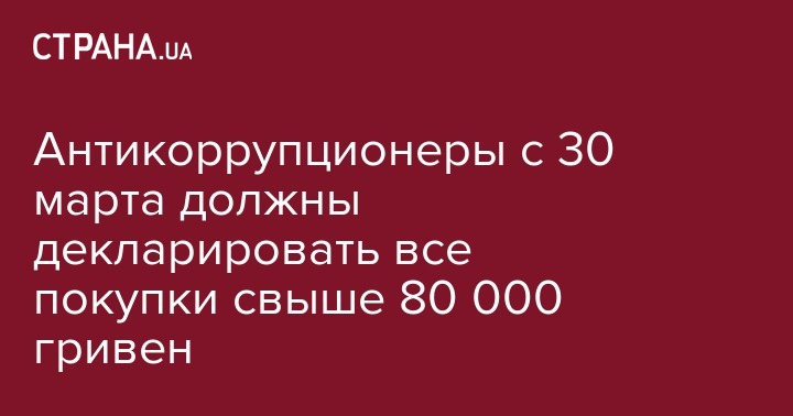 Антикоррупционеры с 30 марта должны декларировать все покупки свыше 80 000 гривен