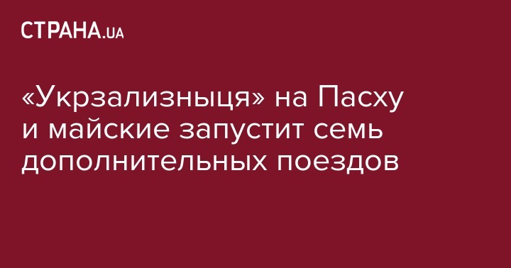 Дополнительные семь поездов в направлении Ужгорода, Львова, Ивано-Франковска, Одессы, Николаева, Днепропетровска и Запорожья будут курсировать на Пасху и майские праздники. Об этом сообщает сайт ведомства.