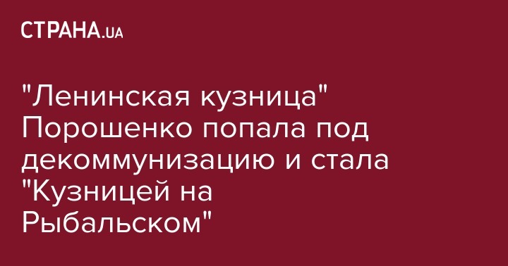 Завод "Ленинская кузница", который принадлежит президенту Украины, в ходе декоммунизации сменил название на "Кузница на Рыбальском". Об этом сообщает официальная страница предприятия.