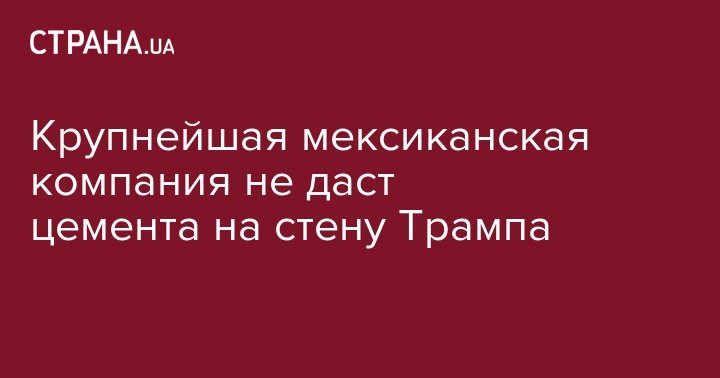 Крупнейшая мексиканская компания по производству цемента Cemex отказалась участвовать в строительстве пограничной стены, которую обещает построить президент США Дональд Трамп. Об этом сказал президент компании Ромелио Самбрано, передает CNN.