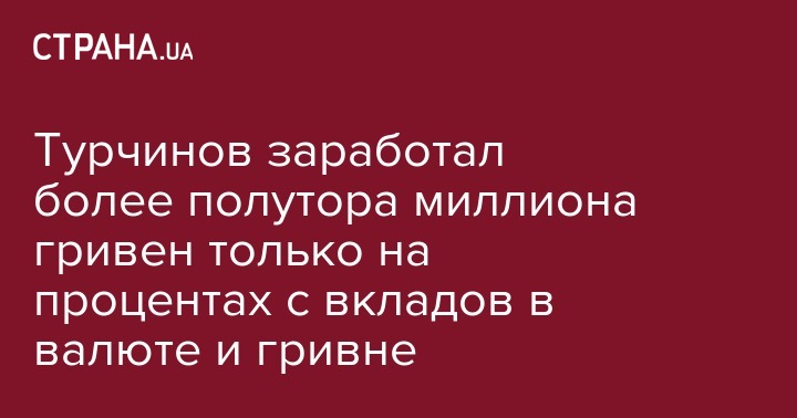512 807 гривен составила его заработная плата, 22 800 гривен - доход от отчуждения ценных бумаг и корпоративных прав, а 1 668 675 гривен - проценты. На счетах в Ощадбанке у Турчинова почти 50 тыс. гривен, почти 10 тыс. евро и более 810 тыс. долларов (в предыдущем отчетном году было 758 тыс. долларов). Секретарь СНБО также задекларировал 320 тыс. гривен наличных средств (в предыдущем году было 250 тыс. гривен), 55 тыс. евро и 735 тыс. долларов. Его супруга задекларировала 447 465 гривен доходов за 2016 год (97 465 гривен зарплаты и 350 тыс. гривен от отчуждения ценных бумаг и корпоративных прав), на счету в Ощадбанке у нее около 9 тыс. евро (в предыдущем году было 1,7 тыс. евро). Остальные сведения в декларации секретаря СНБО за 2016 год не отличаются от задекларированного ранее.