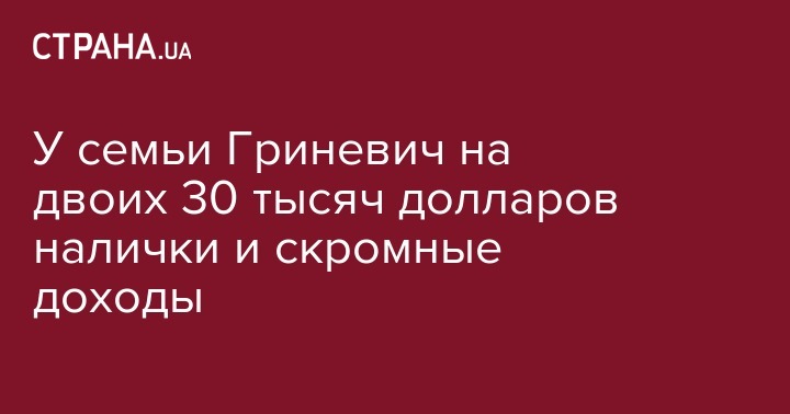 В собственности Гриневич находится земельный участок в Бородянском районе Киевской области площадью 1 196 кв. м, квартиры в Киеве площадью 102,7 кв. м (совместное владение с мужем и сыном), в собственности мужа - земучасток в Большой Снитинке Фастовского района Киевской области площадью 1 200 кв. м.