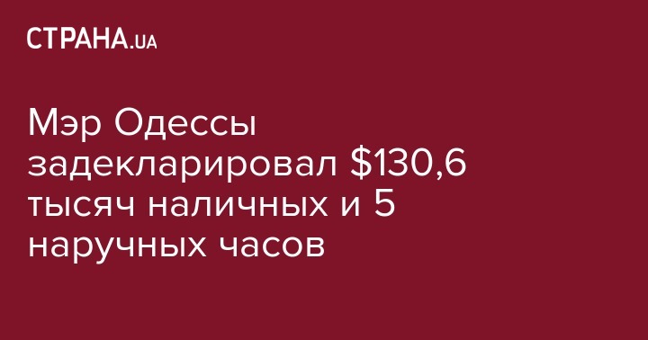 Мэр Одессы задекларировал $130,6 тысяч наличных и 5 наручных часов