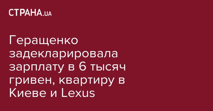 Геращенко задекларировала зарплату в 6 тысяч гривен, квартиру в Киеве и Lexus