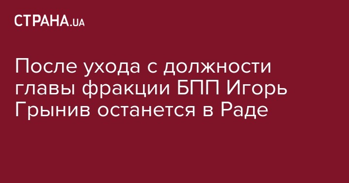 Народный депутат Игорь Грынив, который написал заявление об уходе с должности руководителя фракции "Блок Петра Порошенко", не будет уходить из парламента и сдавать мандат. Об этом сообщил новоизбранный глава фракции БПП Артур Герасимов, передает "Интерфакс-Украина".