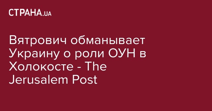 Вятрович обманывает Украину о роли ОУН в Холокосте - The Jerusalem Post