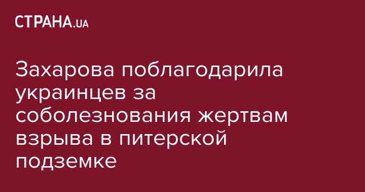 Официальный представитель МИД России Мария Захарова поблагодарила украинцев за соболезнования в связи с терактом в метро Санкт-Петербурга. Об этом сообщает RT.