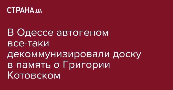 Как сообщала "Страна", в Одессе не смогли декоммунизировать памятную доску Котовскому. Два дня назад коммунальщики уже пытались избавиться от Котовского. Но барельеф  не смогли снять со тсены, а жители дома начали бояться за безопасность здания и запретили демонтировать памятн