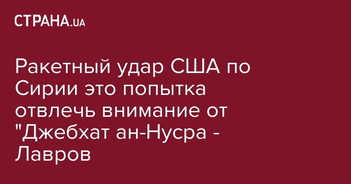 Сегодня, 7 апреля, министр иностранных дел России Сергей Лавров заявил, что Вашингтон, нанеся ракетный удар по авиабазе в Сирии, попытался отвлечь внимание мирового сообщества от действий террористической организации "Джебхат ан-Нусра", передает портал Газета.