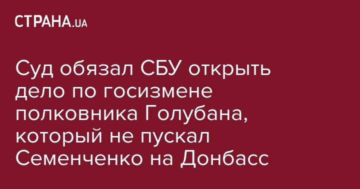 Шевченковский районный суд Киева, рассмотрев заявление нардепа Игоря Луценко ("Батькивщина"), обязал Службу безопасности Украины открыть уголовное производство по ст. 111 УК Украины ( "государственная измена") в отношении полковника Национальной полиции Юрия Голубана, который возможно воевал на стороне "ДНР". Об этом в Facebook сообщил журналист Владимир Бойко и опубликовал соответствующее решение суда.