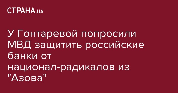 У Гонтаревой обратили внимание на "многочисленные противоправные действия в стране военно-политической группировки "Национальный корпус", которая систематически дестабилизирует работу банков с государственным российским капиталом и блокирует нормальный доступ украинцев к своим средствам".