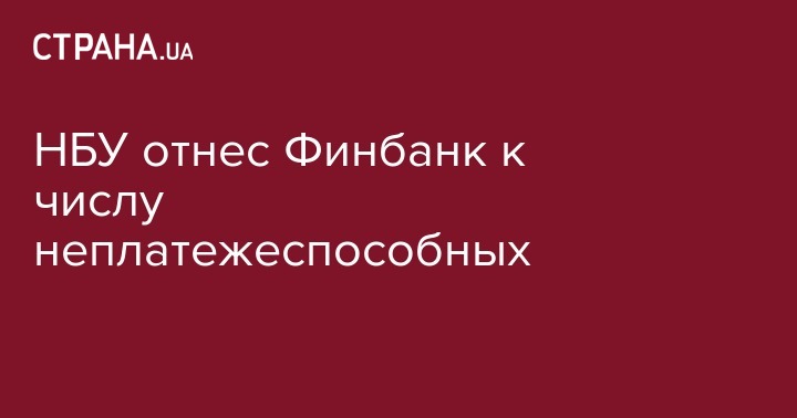 Национальный банк Украины (НБУ) отнес Финбанк к категории неплатежеспособных, сообщается на веб-сайте регулятора. Соответствующее решение № 217-рш/БТ принято правлением НБУ 7 апреля 2017 года.