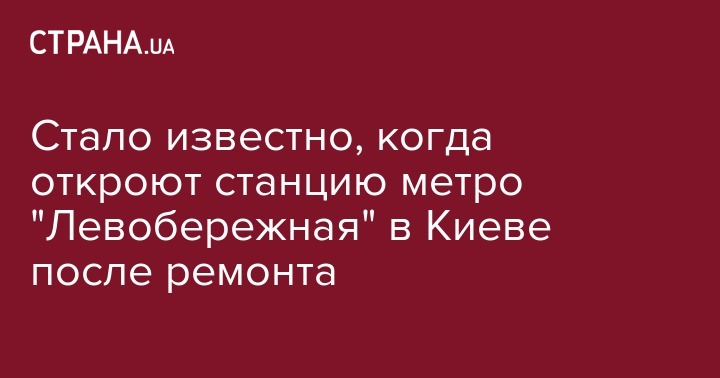 Обновленная станция метро "Левобережная" с полностью завершенным ремонтом будет открыта только 1 мая. Об этом заявил мэр столицы Виталий Кличко в эфире телеканала "Киев", передает его пресс-служба.