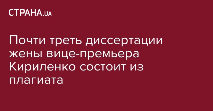 Около 30% текста докторской диссертации супруги вице-премьера Кириленко является плагиатом. Об этом сообщает ZN.
