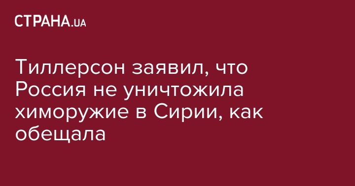 Тиллерсон заявил, что Россия не уничтожила химоружие в Сирии, как обещала