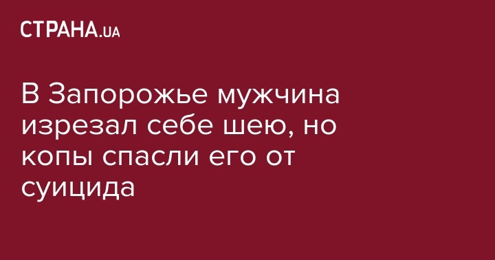 В Запорожье полицейские спасли мужчину, который пытался покончить с собой и уже успел нанести себе ножом несколько ран на шее. Об этом сообщает пресс-служба патрульной полиции города.