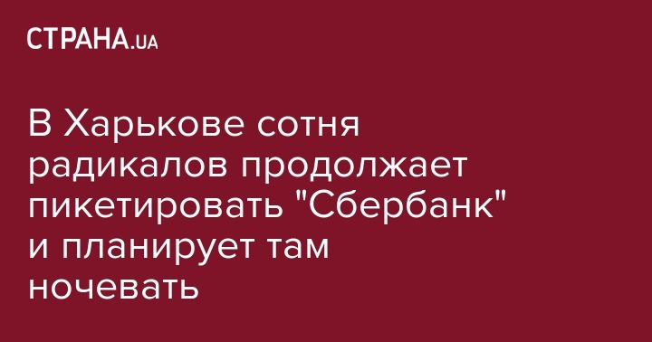 В Харькове представители "Национального корпуса" не расходятся, под отделением "Сбербанка" на ул. Донец-Захаржевского остаются еще порядка сотни радикалов и около 20 правоохранителей. Об этом сообщает "МедиаПорт".